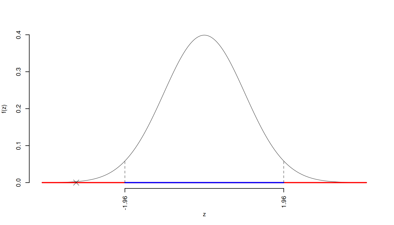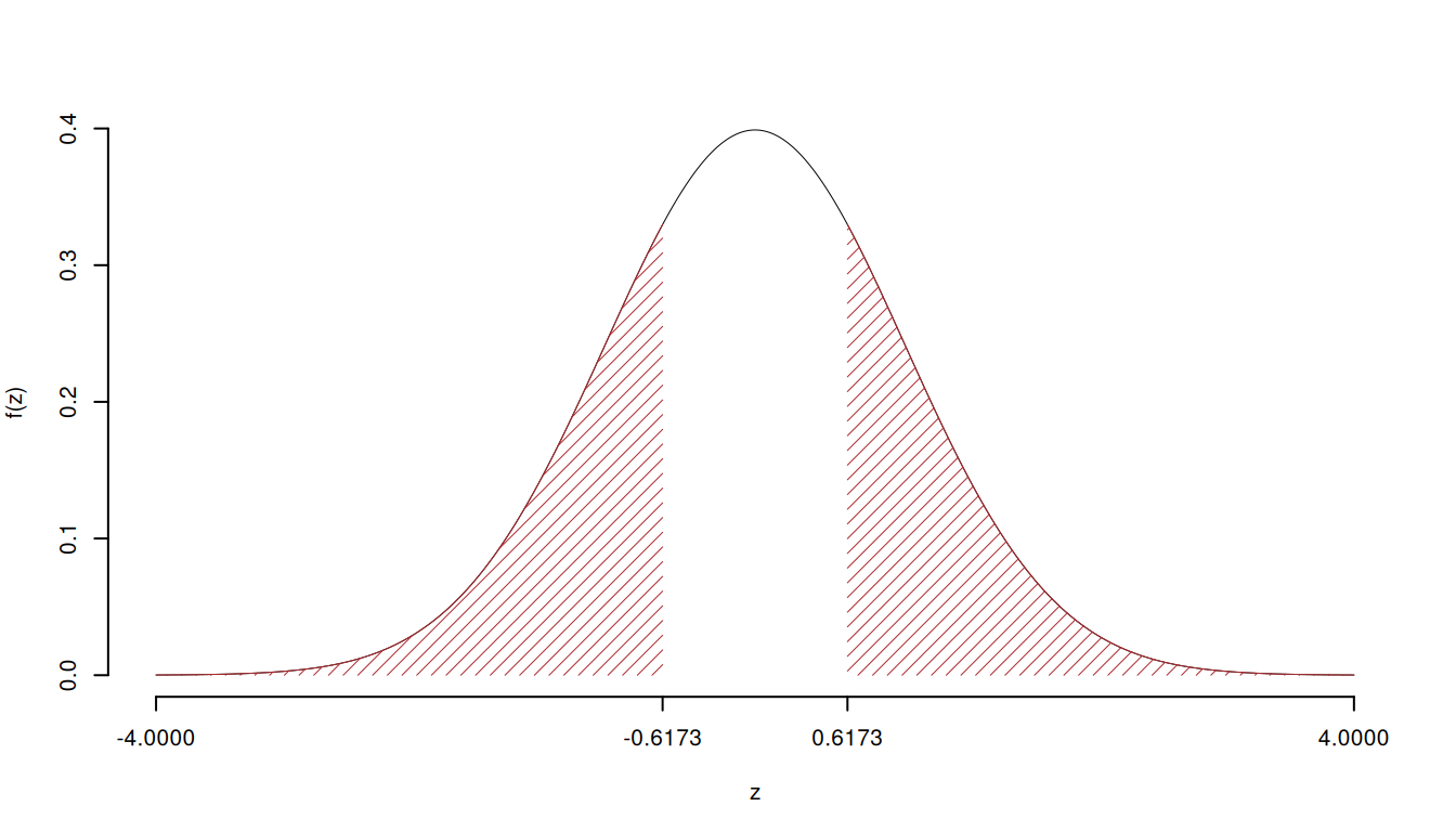 \[ p_{\text{value}} = P(|Z|>|0.62|)=2P(Z>0.62)=0.537051 \]