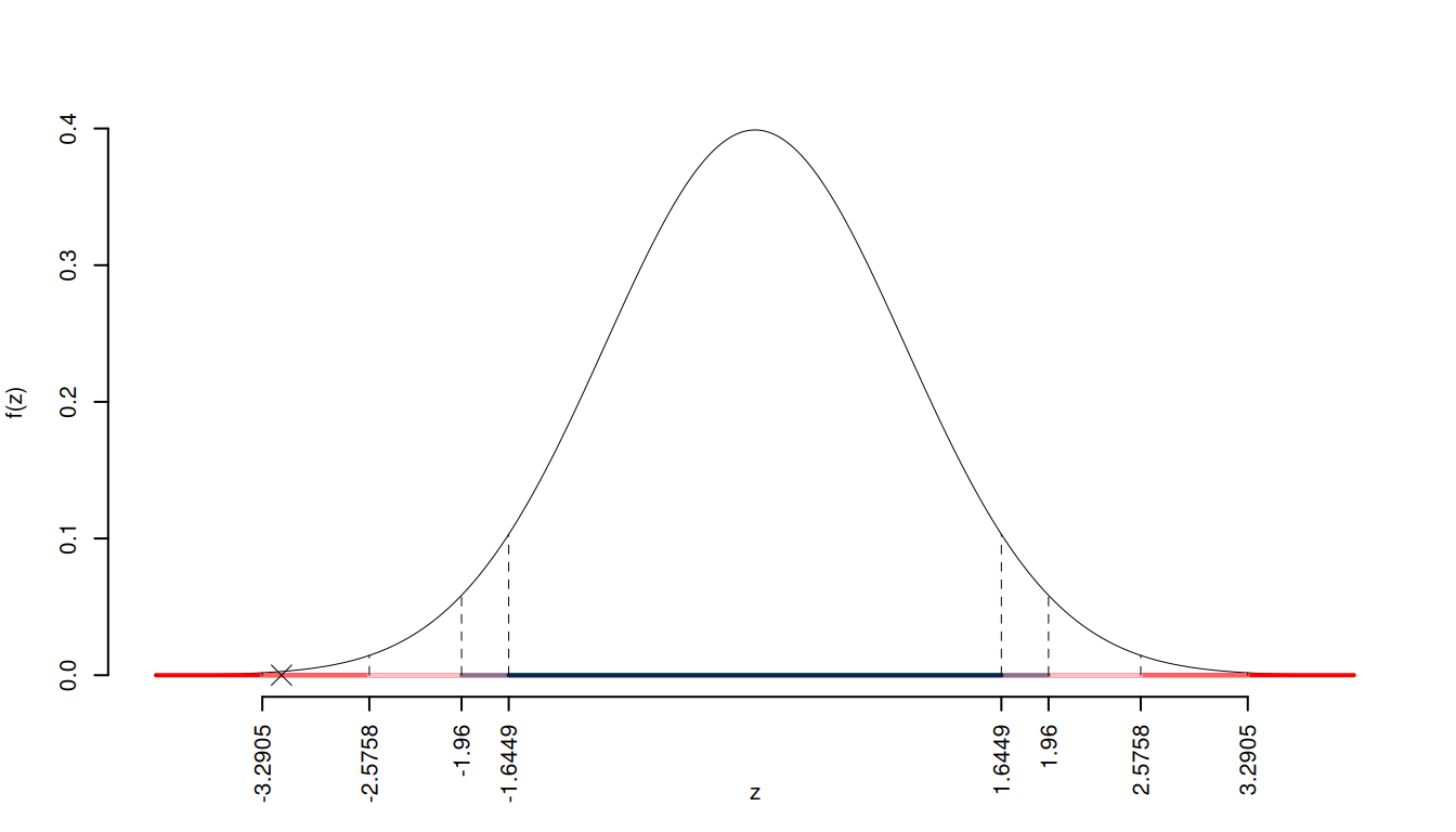 Attenzione il calcolo del \(p_\text{value}\) con la \(T\) è puramente illustrativo e non può essere riprodotto senza una calcolatrice statistica adeguata.\[ 0 < p_\text{value}= 7e-14 \leq 0.001 \]