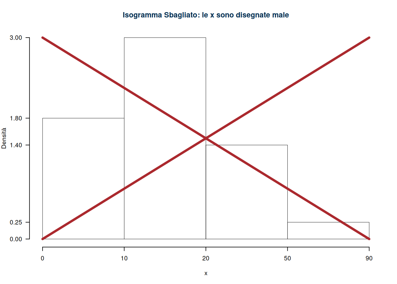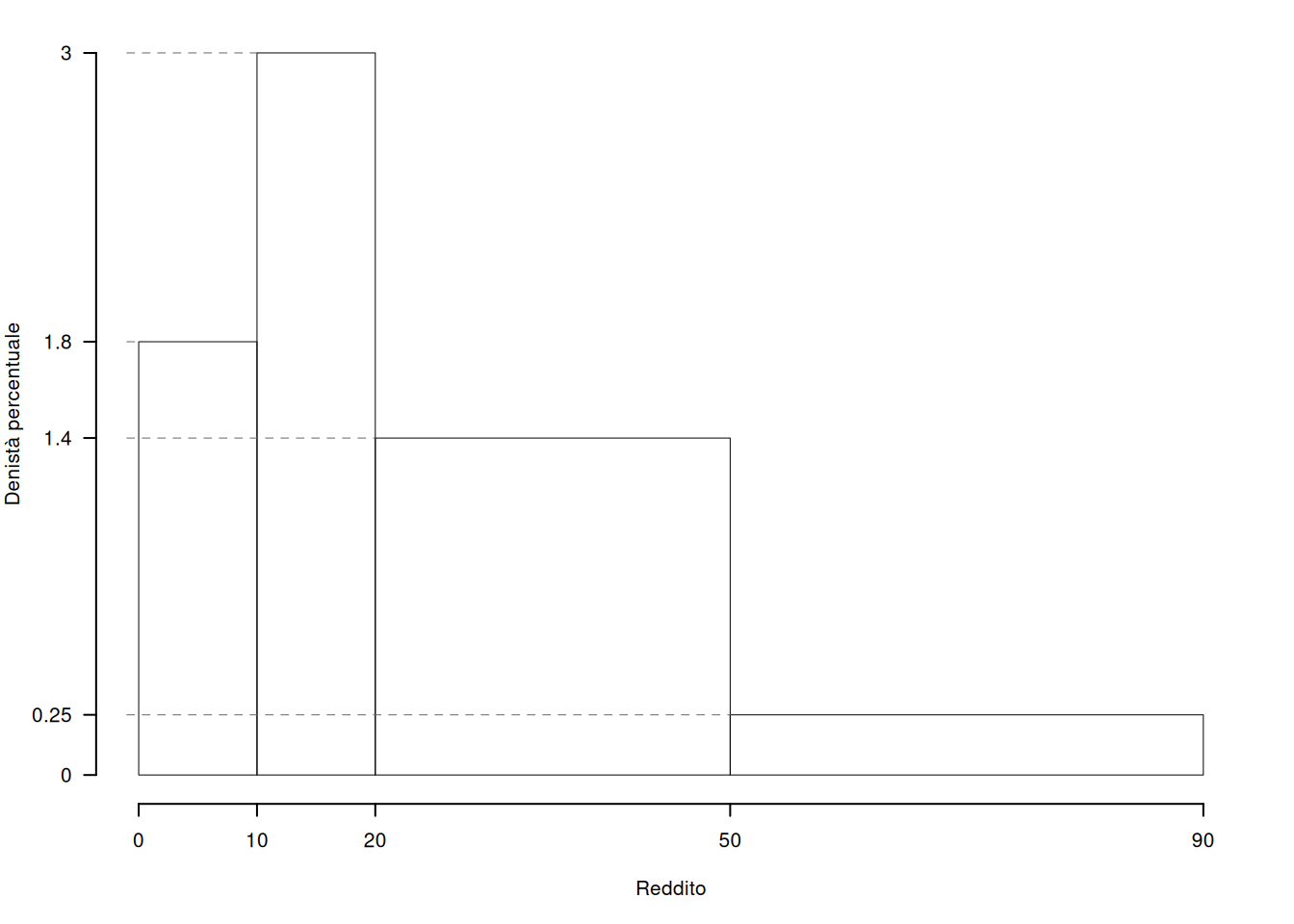 Per disegnare un istogramma di densità in modo corretto si devono rispettare le proporzioni tra le basi