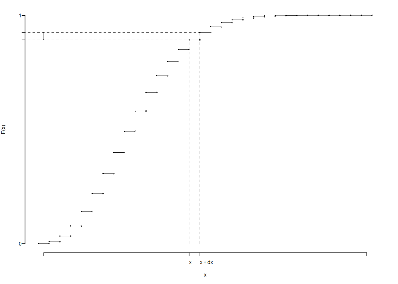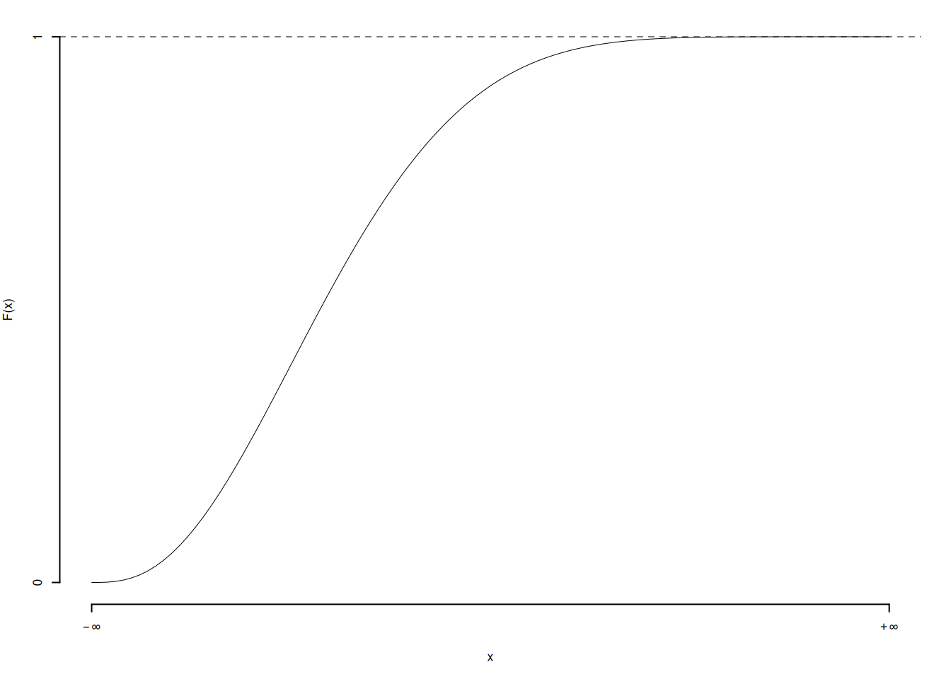 - \(\lim_{x\to -\infty} F(x) = 0\), \(\lim_{x\to\infty} F(x) = 1\).