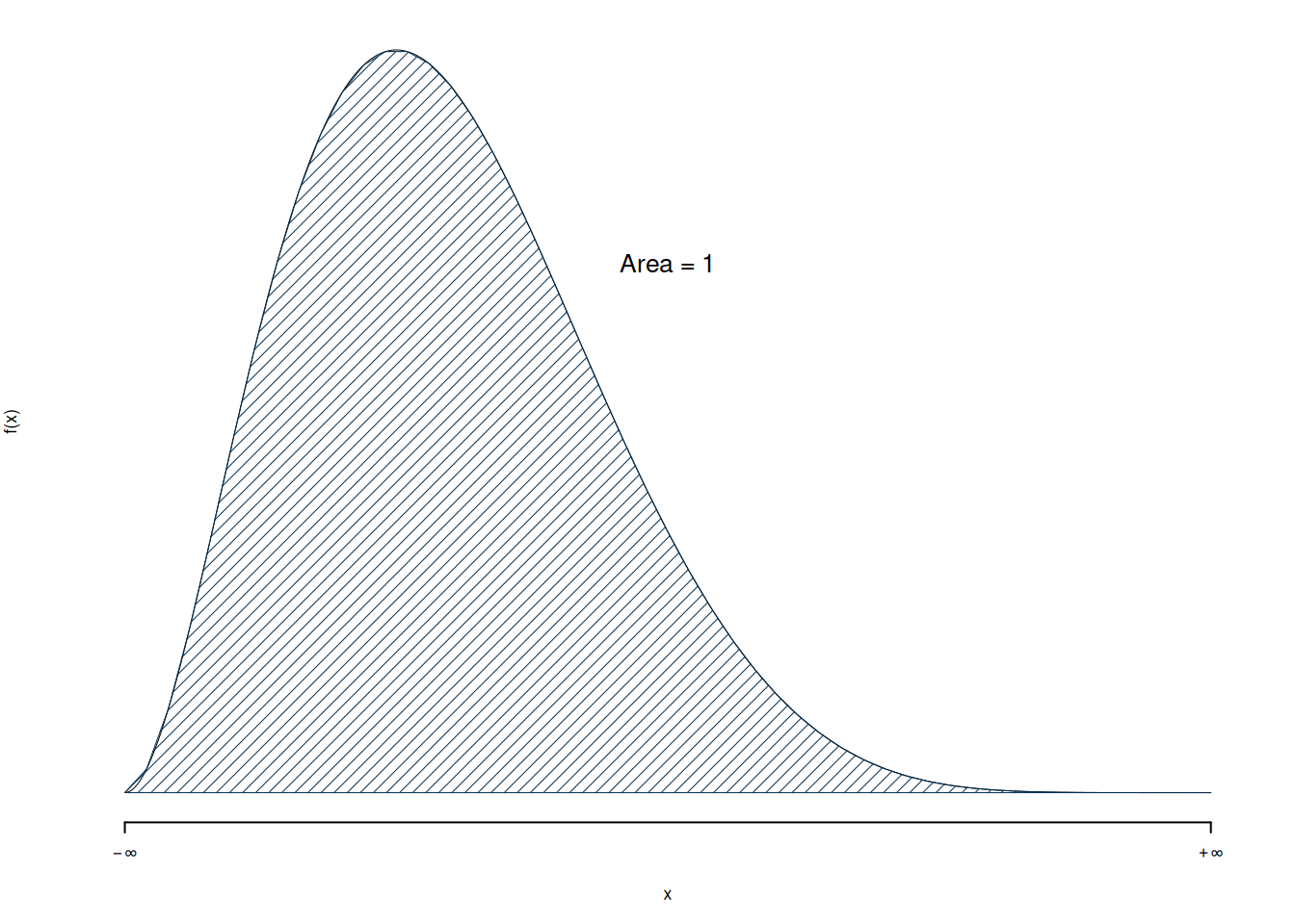 Una VC continua \(X\) è caratterizzata dal supporto \(S_X\subseteq\mathbb{R}\) e dalla funzione di densità \(f\) la cui area sottostante a \(S_X\) è uguale ad 1. \[\int_{-\infty}^{+\infty}f(x)dx=1\]