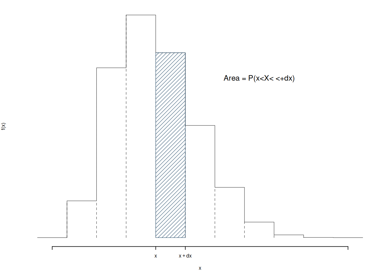 Definizione 6.2 (Funzione di Probabilità) Sia \(X\) una VC con supporto \(S_X\), si definisce \(f\) la funzione di probabilità: è la probabilità che la VC \(X\) assuma esattamente il valore \(x\) \[ f(x)=P(X=x), ~x\in S_X \]