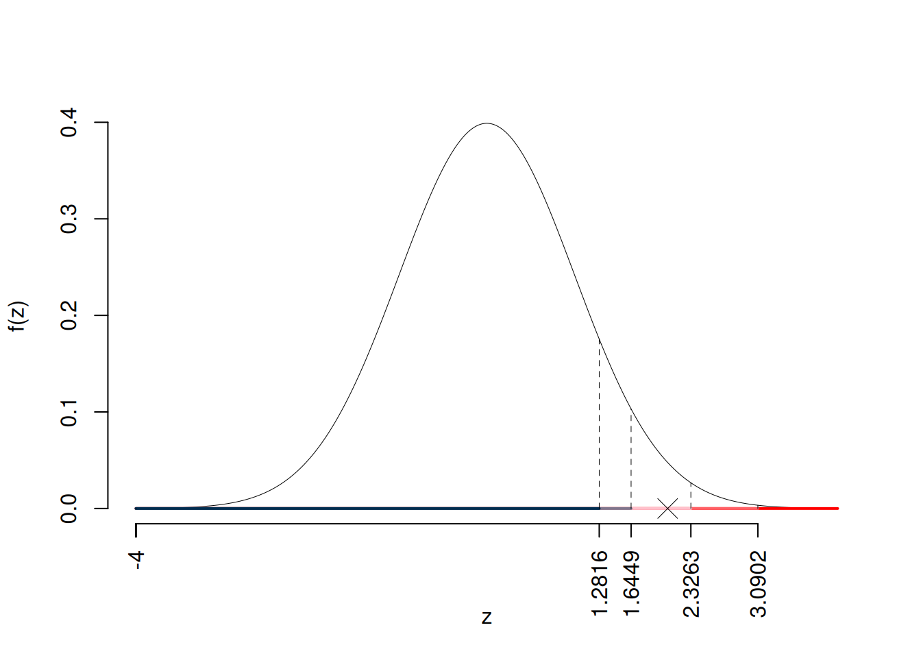 \(z_{0.1}=1.2816\); \(z_{0.05}=1.6449\); \(z_{0.01}=2.3263\); \(z_{0.001}=3.0902\)